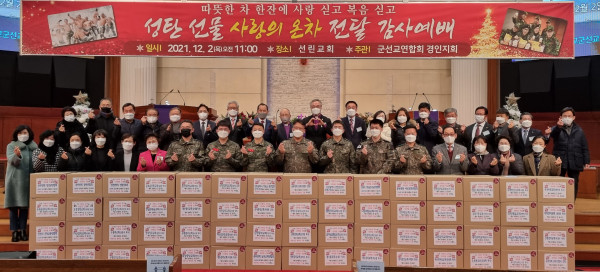 (사)한국기독교군선교연합회 경인지회(이사장 권용각 감독, 지회장 이인구 목사, 사무국장 오광열 장로)는 지난 12월 2일 선린감리교회(담임 권구현 목사)에서 군 장병들에게 전해 줄 제17차 사랑의 온차 전달 감사예배를 가졌다.