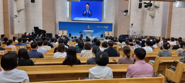 김 목사는 ‘하나님 마음에 합한 사람’이라는 제목의 설교를 통해 “모든 권력은 하나님으로부터 나오는데, 하나님께서는 항상 하나님의 마음에 합한 사람을 선택해서 사용하신다”며 “하지만 대부분의 사람들이 권력이 주어질 때 하나님을 마음에 두지 않고 초심을 잃어버리는 우를 범하게 된다”고 말했다. 김 목사는 “다윗이나 다니엘은 그들의 마음에 오로지 하나님만을 생각하고 기도하면서 하나님 중심으로 산 사람들”이라며 “이재호 구청장님을 비롯해 시의원과 구의원 등은 모두 하나님 마음에 합한 자들로 초심을 잃지 않고 구민들을 잘 섬겨 나감으로 행복한 연수구를 만들어 나가는 일에 힘을 모아주길 바란다”고 당부했다.