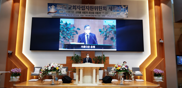 ‘부흥으로, 교회를 새롭게 세상을 이롭게’라는 주제로 열린 이날 세미나 1부 예배는 실무간사 이정흠 목사의 사회로 회계 박종의 장로의 기도, 서기 이근준 목사의 성경봉독, 위원장 이건영 목사의 설교 순으로 진행됐다. 이 목사는 ‘아름다운 동행’이라는 제목의 설교를 통해 “우리 대한민국이 하나님의 특별한 사랑과 은혜로 전 세계 경제 10위권의 놀라운 성장을 이루었고 한국교회도 사랑하셨다”며 “하지만 코로나19를 비롯해 원치 않는 어려움을 당하게 되었지만 상황이나 사람보고 절망하지 말고 예수님과 함께한다는 믿음을 가지고 오늘 세미나를 통해 큰 위로와 도전을 받는 계기가 되길 바란다”고 말했다.