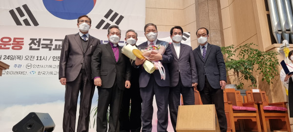 인천광역시기독교총연합회(총회장 윤보환 감독)와 수도권기독교연합협의회(공동대표 김재박 목사, 임다윗 목사, 윤보환 감독)가 공동주관한 가운데 전국교회 차원의 최초로 열린 3.1운동 연합기도회는 1885년 최초로 복음이 전해지고 해외 독립운동의 출발지인 인천에서 열린 행사로 3.1 만세운동 태극기 특별전시회도 가졌다.