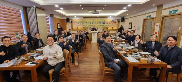 부평구기독교연합회(회장 신장호 목사)는 지난 12월 8일 누룩골에서 증경회장과 임원 등이 참석한 가운데 2022년 부평구기독교연합회 송년회 및 증경회장 간담회를 갖고 2022년도 연간행사 보고 후 새해에도 부평구와 연합회 발전을 위해 노력할 것을 다짐했다.