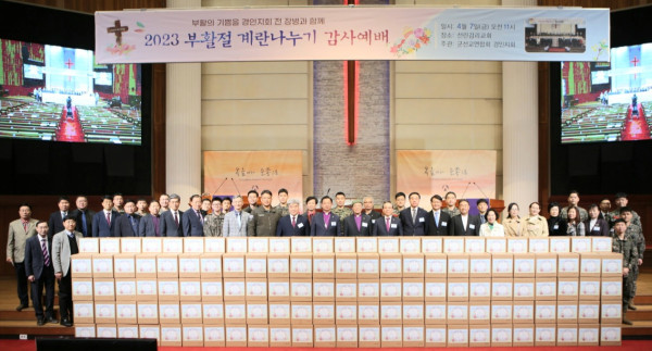 사)한국기독교군선교연합회 경인지회(지회장 이인구 목사)는 2023년 부활절을 맞아 지난 4월 7일 선린감리교회(담임목사 권구현)에서 17사단과 해병2사단, 수도포병여단, 해군인천방어사령부, 국제평화지원단 및 수방사 및 예하에 속한 경인지역 모든 부대교회들과 함께 부활절 계란 나누기 감사예배를 갖고 부활의 기쁨을 나누었다.