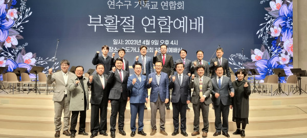연수구기독교연합회(회장 김의철 목사)는 지난 4월 9일 오후 4시 송도가나안교회(담임 김의철 목사)에서 ‘회복을 넘어 부흥으로’라는 주제로 2023년 연수구기독교연합회 부활절연합예배를 갖고 부활의 기쁜 소식을 온 누리에 전할 것을 다짐했다.